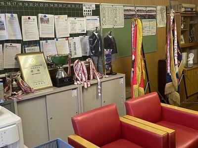 中体連表彰式、全道中体連・吹奏楽コンクール壮行式(校長室には、優勝旗や賞状がいっぱい!)、