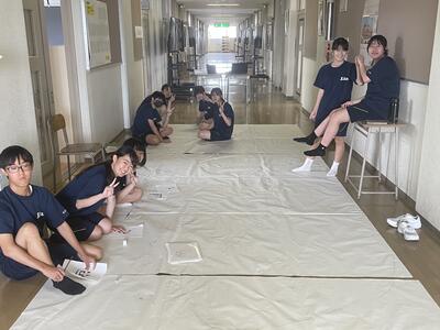 美術部の2、3年生が桔梗祭のバック幕を作成しています。