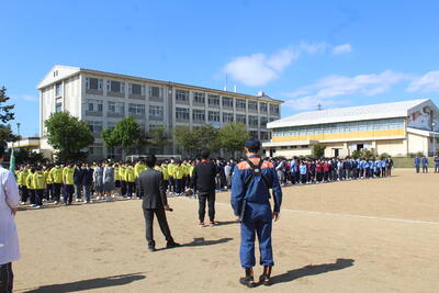 令和5年度、第1回避難訓練を5月11日(木)に実施しました。地震発生、家庭科室からの火災を想定した訓練です。函館市消防本部 桔梗出張所の副所長さんから講評していただきました。日頃から災害等を想定して生活していくことの大切さも学びました。