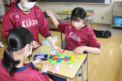 長崎市で開催される平和記念式典に捧げる折り鶴を全校生徒で作成し、折り鶴を束ねる作業を3年生が行いました。