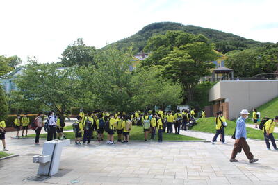 延期になった修学旅行、7月18日(月)に出発しました。ニセコ・留寿都方面(北海道内)の1泊2日の日程で、新型コロナウイルス感染症拡大防止対策として、バス10台(5学級)での修学旅行です。