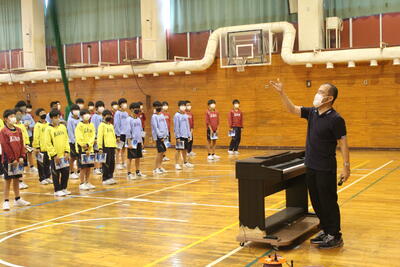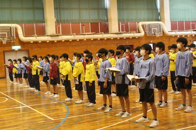 桔梗祭(学校祭 10月3日 市民会館)に向けて、合唱練習を行っています。学級練習、学年練習、そして縦割り練習、特に縦割り練習では3年生がリーダーとなって練習に励んでいます。
