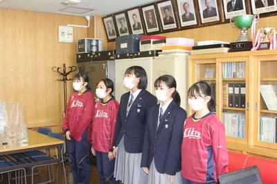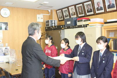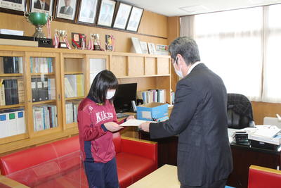 新型コロナ感染拡大防止対策として全校・学年集会を行っていないため、校長室で表彰状を伝達しました。