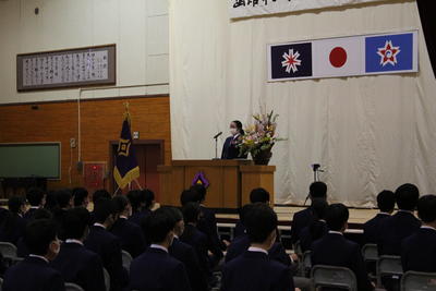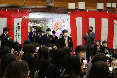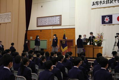 悪天候、足下の悪い中でしたが、3月15日(火)午前9時20分、卒業証書授与式を行いました。昨年度と同様、卒業生・保護者・教職員での卒業式でした。174名の卒業生は、それぞれの進路に向けて学び舎をあとにしました。