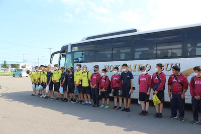 7月17日(土)から千歳市・恵庭市・北広島市で開催される「第38回全日本少年軟式野球北海道大会」に渡島地区代表として出場する本校野球部が出発しました。出発する前に主将から「全道制覇を目標に頑張ってきます」と見送りに来られた保護者に挨拶してバスに乗り込みました。厳しい試合が待っていると思いますが、全力プレーで桔梗中旋風を巻き起こすことを期待しています。